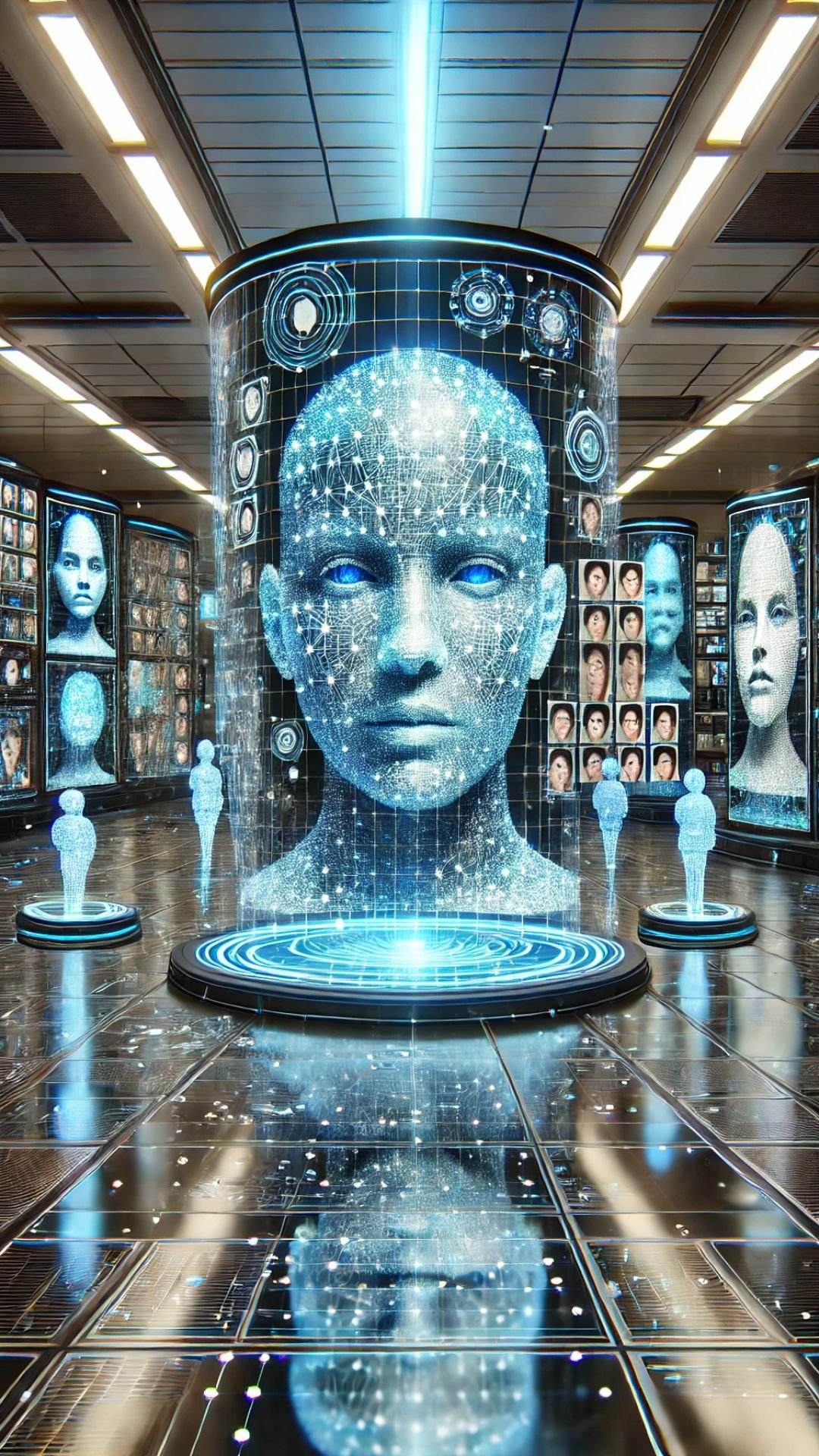 An encoder compresses the original face into a small pattern, keeping only the important details needed for recreating a new version later.